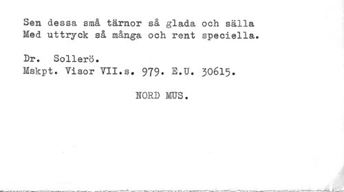//// Sen dessa små tärnor så glada och sälla Med uttryck så många och rent speciella. //// Dr. Sollerö. //// Mskpt. Visor VII.s. 979* E.U. 30615* //// HORD MUS. //// _ _> -¦ ---"-t"* »X---V -V™'---K" ---.VT»"-.,--j < -^ -T - r""">" ////