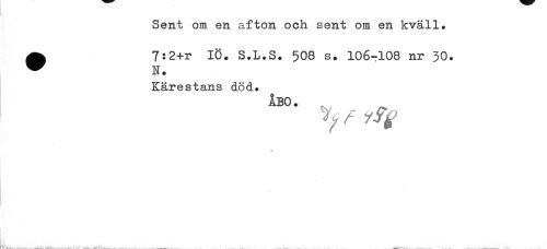 //// Sent om en afton och sent om en kväll. ^ 712+r IÖ. S.L.S. 508 s. 106-108 nr 30. //// Kärestans död. //// ÅBO . //// Yffify //// 0 ////