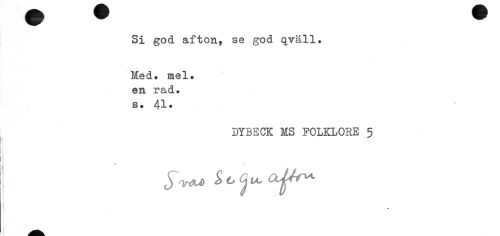 //// Si god afton, se god qväll. //// Med» mel» en rad» s. 41» //// DYBECK MS FOLKLORE 5 //// j . ////
