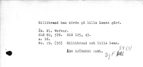 //// Sillibrand han körde på lilla Lenas gård. ib. II. Wefvar. //// SLS 82, 378. SLS 125, 43- //// s. 16. //// No. 29. (50) Sillibrand och lilla * //// ^ ÅBO SJÖBERGS SAML. l.ä, / ////