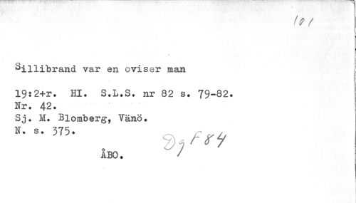//// t* f //// Sillibrand var en oviser man //// 19:2+r. Hl. S.L.S. nr 82 s. 79-82. Hr. 42. //// Sj. M. Blomberg, Tänö. //// åbo. ////