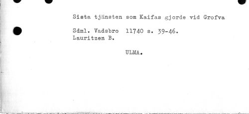 //// Sista tjänsten som Kaifas gjorde vid Grofva //// £ Sdml. Vadsbro 11740 s. 59-46. //// Lauritzen B. //// j //// ULMA . //// \ ////
