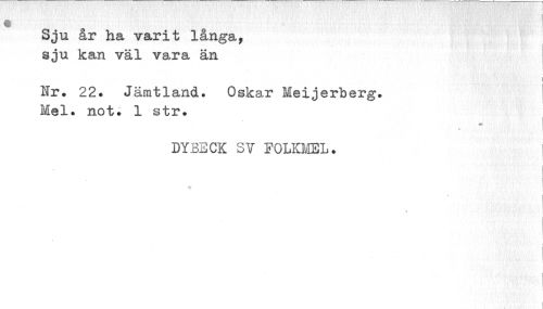 //// » I //// Sju år ha varit långa, //// i //// sju kan väl vara än //// i ! //// I //// Nr* 22. Jämtland* Oskar Meijerberg* 1 //// Mel» not. 1 str* //// r //// DYBECK SY FOLKMEL. //// t //// i ////