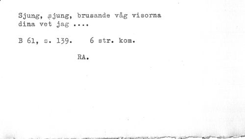 //// Sjung, £jung, brusande våg visorna dina vet jag ... ? //// B 61, s. 139» 6 str» kom. //// ra. ////
