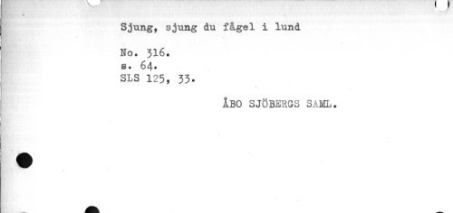 //// *t //// Sjung, sjung du fågel i lund Ko. 316. //// s. 64» //// SLS 125, 33. //// ÅBO SJÖBERGS SAML. ////