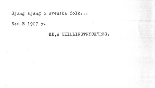//// I //// Sjung sjung o svenska folk... Ses E 1907 y. //// KB, s SKILLINGTRYCKSREG. //// k ////