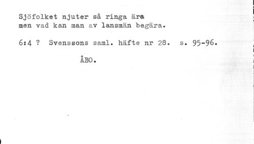 //// Sjöfolket njuter så ringa ära ; //// men vad kan man av lansmän begära. //// i \ //// 6:4 ? Svenssons saml. häfte nr 28. s. 95-96. \ //// i //// ABO. | //// i ! i //// k I //// i //// i //// i i //// 4 ////