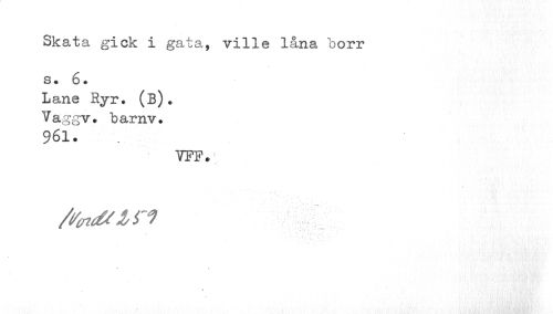 //// Skata gick i gata., ville låna borr s. 6# //// Lane Hyr. (B)* Vaggv. barnv* //// 961. //// VFF* ////