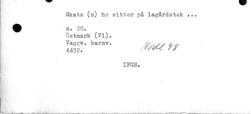 //// Skata (n) ho sitter på lagårdstak ... Östmark (Vi). //// Taggv. barnv. ^ //// % //// IFGH. ////