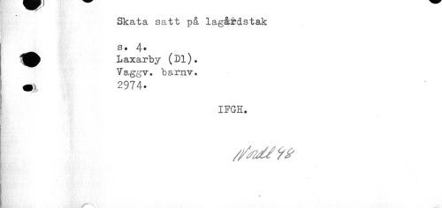 //// Skata satt på lagårdstak //// s» 4. //// ^^^ Laxarby ( Dl) . //// Vaggv. barnv. //// 2974- //// IFGH. //// /fa//9* //// » ////