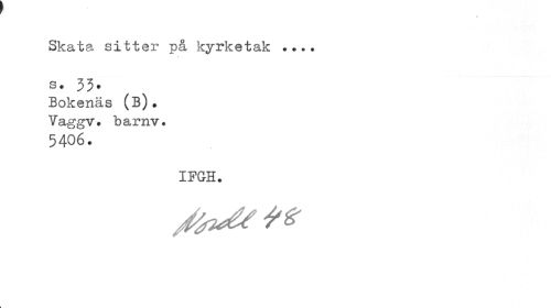 //// Skata sitter på kyrketak ... s. 33. //// Bokenäs (B). Vaggv. barnv. 5406. //// IFGH. ////
