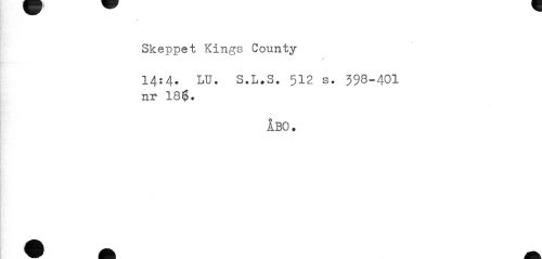 //// Skeppet Kings County //// 14:4. LU. S.L.S. 512 s. 398-401 nr 18$. //// ÅBO. ////