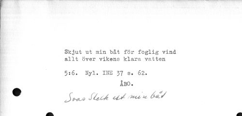 //// « //// Skjut ut min båt för foglig vind allt över vikens klara vatten //// 5:6. Nyl. Il® 37 s. 62. //// åbo. ////