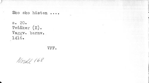 //// Sko sko hästen ... //// ! //// I //// s. 20. //// Tvååker (H). //// "Vaggv. barnv. ! //// 1416. //// % //// VFF. ////