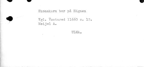 //// Skomakarn bor pä Hägnen //// ^^ Vgl. -ostared 11660 s. 12. //// Meijel A. //// ULMA• //// ... .. * • . ////
