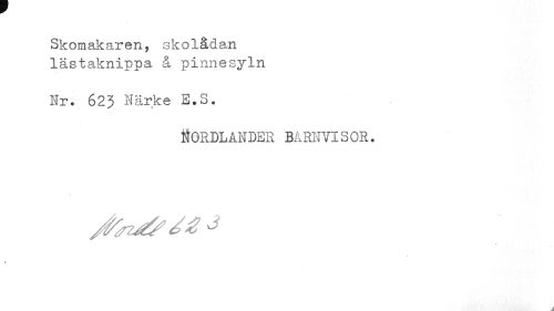 //// Skomakaren, skolådan lästaknippa å pinnesyln //// Nr. 623 Närke e.s. //// Nordlander barnvisor. ////