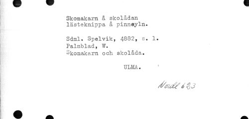 //// Skomakarn å skolådan lästeknippa å pinneyln* //// Sdml. Spelvik, 4832, s. 1. Palmblad, W. Skomakarn och skolåda, //// ¦ //// ULMA. ////