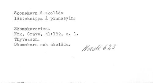 //// Skomakarn å skolåda lästaknippa å pinnasyln. //// Sk o mak ar e v i s a • //// Hrk, Gräve, 41:182, s. 1. //// Thyvasson. //// Skomakarn och skolåda. ^ ////