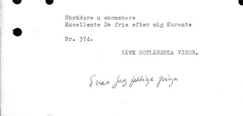 //// Skrädare u skomakare //// Excellente De fria efter mig Kurante //// Nr. 374- //// SÄVfE GOTLÄNDSKA VISOR. //// é //// * ////