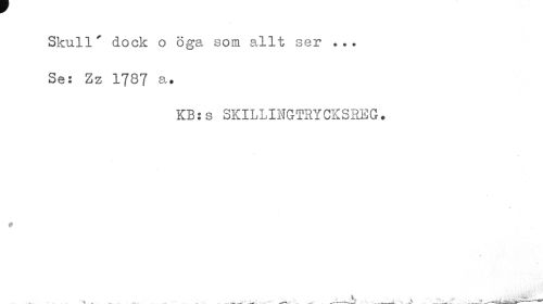 //// Skull' dock o öga som allt ser ... //// Se: Zz 1787 a. //// KB:s SKILLINGTRYCKSREG. //// # ////