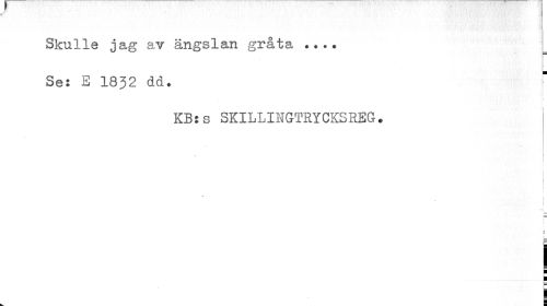 //// 4 //// Skulle jag av ängslan gråta *»»* //// . r //// I //// Se: E 1832 dd. //// i //// KB:s SKILLINGTRYCKSREG * //// I //// i //// b i //// b I ////
