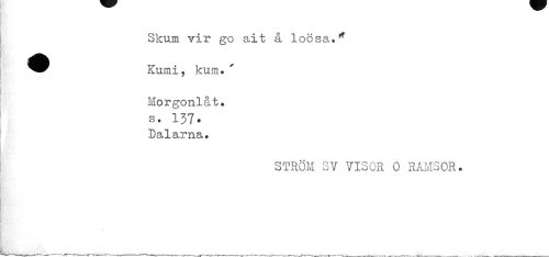 //// Skum vir go ait å loösa»* ^^ Kumi, kum. ' //// Morgonlåt. //// S. 137. //// Dalarna. //// STRÖM SV VISOR 0 RAMSOR. ////