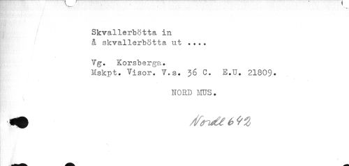 //// Skvallerbötta in //// i //// å skvallerbötta ut ... Vg. Korsberga. //// Mskpt. Visor! V.s. 36 G. E.U. 21809. //// NORD MUS. //// /ifnde e> //// \ ////