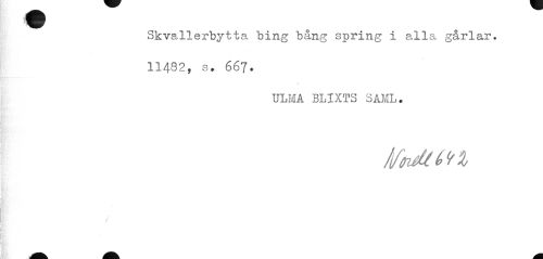 //// Skvallerbytta bing bång spring i alla gårlar. //// 11482, s. 667. //// ULMA BLIXTS SAML. //// J ////