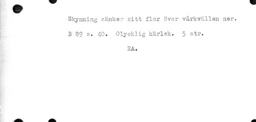 //// Skymning sänker sitt flor över vårkvällen ner. B 89 s. 40. Olycklig kärlek. 5 str. //// HA. ////