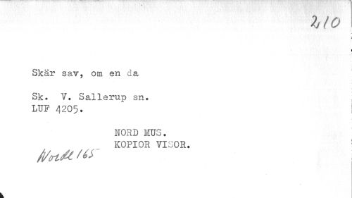 //// 1(0 //// I //// s //// I //// i //// f //// Skär sav, om en da //// Sk. V. Sallerup sn ? LUF 4205. //// NORD MUS. KOPIOR VISOR. //// /(/<rt& ////