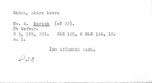//// I //// Skära, skära havra //// Ho. 4. Marsch (=Y 22). Öb Wefvar. //// H 3, 165, 201. SLS 125, 6 SLS 126, 10. s. 1. //// 1 //// ÅBO SJÖBERGS såml. //// J>ao //// 9 . \ ////