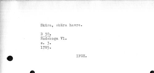 //// Skära, skära havre. D JO* //// Rudskoga 71• //// s # 3 * //// 1785. //// ä IFGH. ////