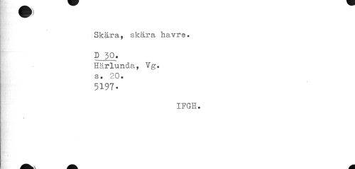 //// Skära, skära havre. D 50. //// Härlunda, Vg. //// s. 20. //// 5197- //// IFGH. ////