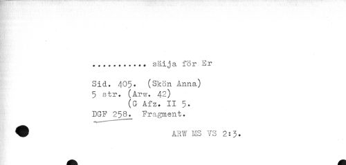 //// * //// w> //// ¦ //// . ... säija för Er //// Sid. 405. (Skön Anna) 5 str. (Arw. 42) //// (G Afz. II 5. DGF 258. Fragment. //// ^P ARW MS ¥S 2:3. ////