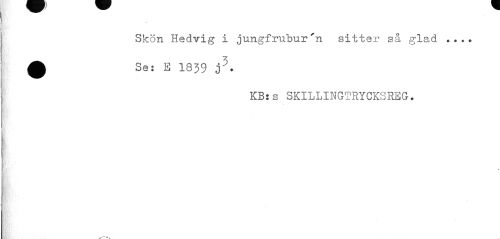 //// Skön Hedvig i jungfrubur'n sitter så glad ... A Se: E 1839 j:>. //// KB:s SKILLINGTRYCKSREG. ////