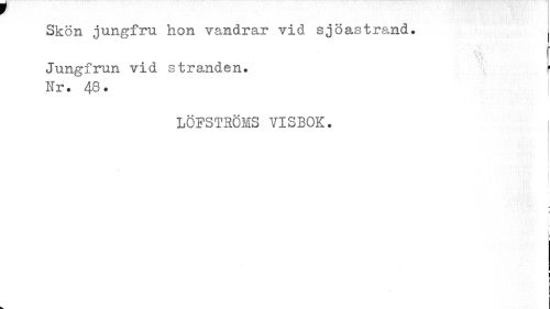 //// Skön jungfru hon vandrar vid sjöastrand. //// I5 //// Jungfrun vid stranden. r //// Nr. 48. //// LÖFSTHÖMS VISBOK. //// i l //// ! //// k r //// i i i I ////