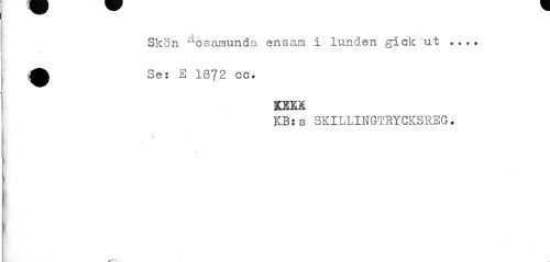 //// ; s //// Skön xtosamunda ensam i lunden gick ut ... A Se: E 1872 cc. //// OM //// KB:s SKILLINGTRYCKSREG. //// ^•r-ofs v. ////