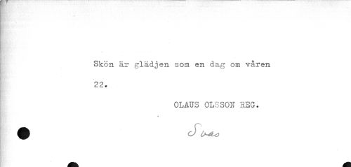 //// Skön är glädjen som en dag om våren 22. //// OLAUS OLSSON REG. //// % //// ci O^io ////