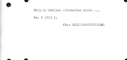 //// Skön är kvällen aftonsolen klara ... //// Se: S 1853 i. //// KB: s SKILLINGTRYCKSRBGf. ////