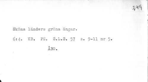 //// i //// i //// ! //// Sköna länders gröna ängar. 6:4. KB. PS. S.L.S. 57 s. 9-11 nr 5. //// ÅBO. ////