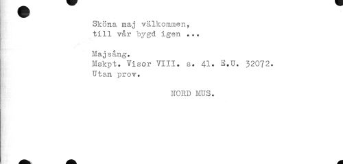 //// fl ¦ //// I //// Sköna maj välkommen, till vår bygd igen ... //// MMr^... •••• //// Majsång. //// Mskpt• Visor VIII* s. 41« 32072. //// Utan prov» //// nord mus. ////