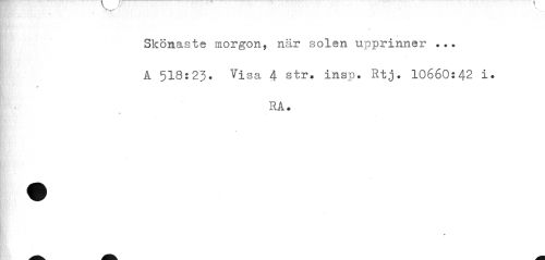 //// Skönaste morgon, när solen upprinner ... Å 518:23. Visa 4 str. insp. Rtj. 10660:42 i. //// jr //// ra. //// v //// 0 ////