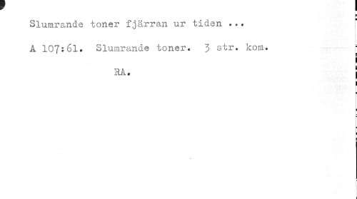 //// ¦ //// H //// f //// Slumrande toner fjärran ur tiden ... A 107:61. Slumrande toner. 3 str. kom. //// ¦ //// Rå. j //// r 1 //// t //// I //// ¦ //// « //// i //// I » ////
