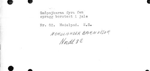 //// ; . » , //// Småpojkarna fyra fem spragg borstest i jale //// Nr. 82. Medelpad. ////