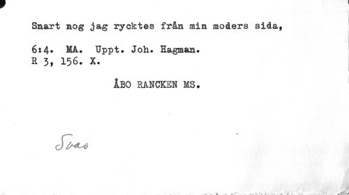 //// Smart nog jag rycktes från mim moders sida, //// 6:4» MÅ. Uppt. Joh. Hagmam. E 3, 156. X. //// ÅBO RÅHCKSH MS. //// cU ////