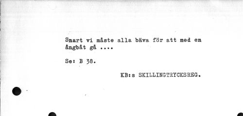 //// I //// / //// Snart vi måste alla bäva för att med en ångbåt gå •••• //// Se: B 38. //// % //// KB: s SKILLINGT3.YCKSREG. ////