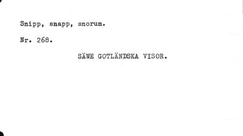 //// ... I //// Snipp, snapp, snorum. Nr. 268. //// SÄWE GOTLÄNDSKA VISOR. ////