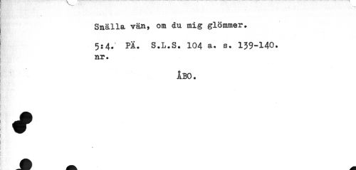 //// é //// Snälla vän, om du mig glömmer. //// 5*4#' PA. S.L.S. 104 s. 139-140. //// nr. //// i //// ÅBO. ////