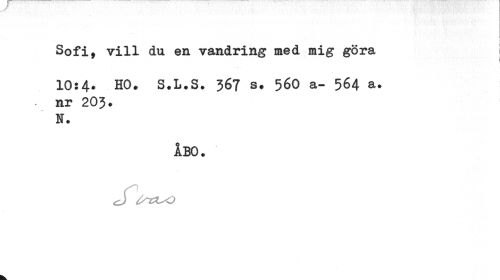 //// Sofi, vill du en vandring med mig göra I //// j //// 10:4. HO. S.L.S. 367 s. 56O a- 564 a. nr 203. N. //// ÅBO. //// eS ^nuo ////