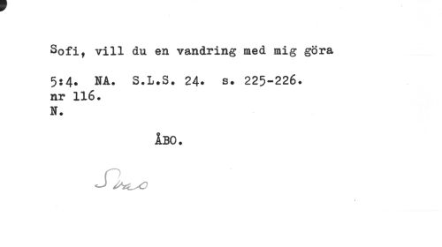 //// Sofi, vill du en vandring med mig göra //// 5s4. NA. S.L.S. 24. s. 225-226. nr 116. N. //// ÅBO. ////